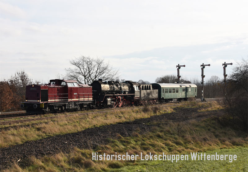 13 October 2012 was certainly one of the most important days in the history of our association. We transferred some of our large steam locomotives from Salzwedel via Stendal to Wittenberge. The following picture shows the train consisting of some of our class 50 steam locomotives, with the wagons of the so-called disaster train in between, which provided the necessary braking effect for the train. The locomotive was 221 106 of the Potsdam railway company, which has since been sold.