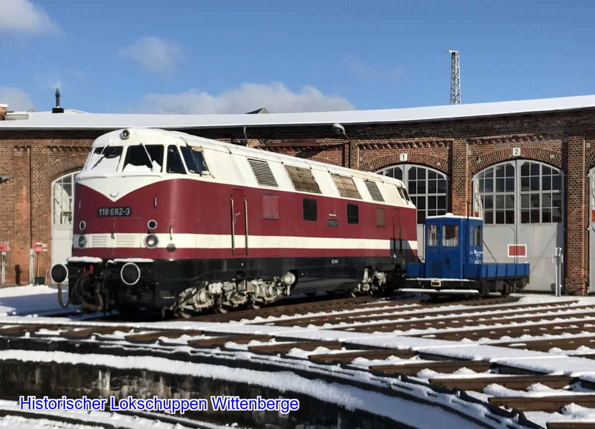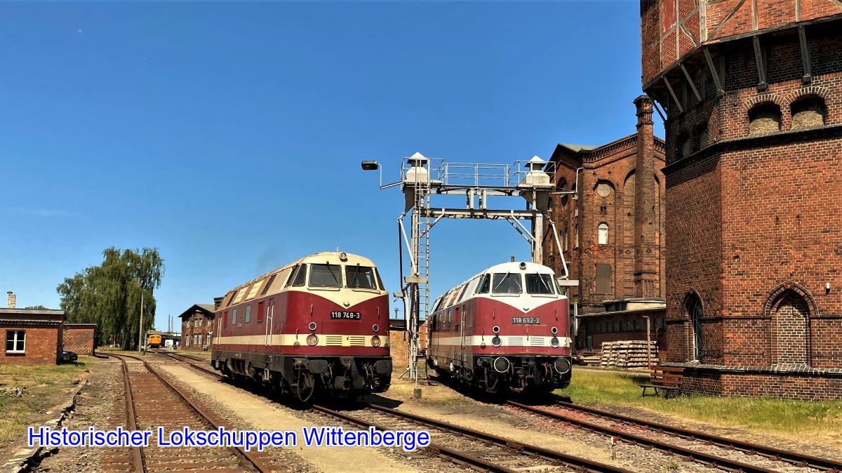 Steam locomotive enthusiasts can also enjoy diesel locomotives. On 12 May 2018, we enjoyed our two class 118 diesel locomotives sunbathing in front of the engine shed.