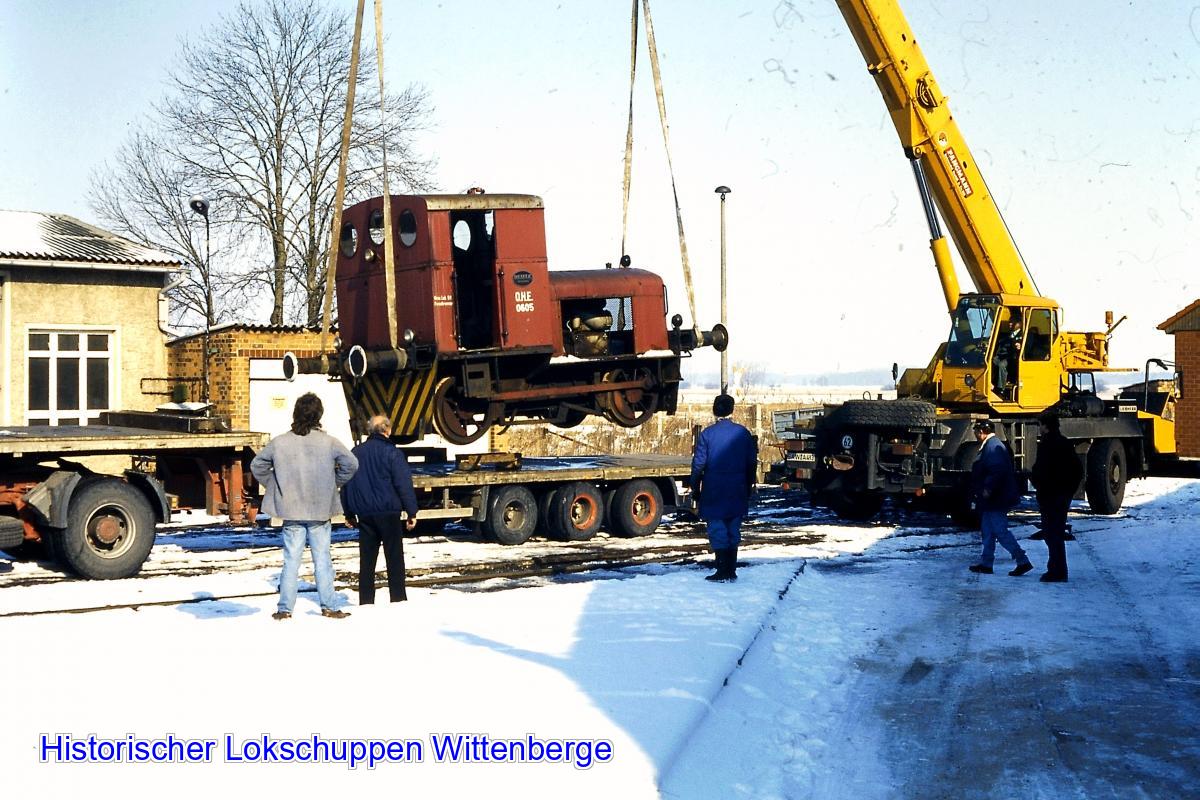 On 24 February 1996, another locomotive was added to our collection of historic locomotives. Locomotive 0605, which previously belonged to the Osthannoversche Eisenbahn and had been used for light shunting duties at Amelinghausen station, was delivered by low-loader.