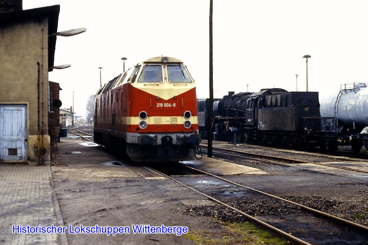 On 29 December 1994, 219 004 of Deutsche Bahn AG stood ready in the Salzwedel depot to haul passenger trains on the lines in the Altmark. The steam locomotives of the Dampflokfreunde Salzwedel (on the right) had been transferred to Salzwedel from the scap yard in Meyenburg almost two years earlier and were waiting to be refurbished.
