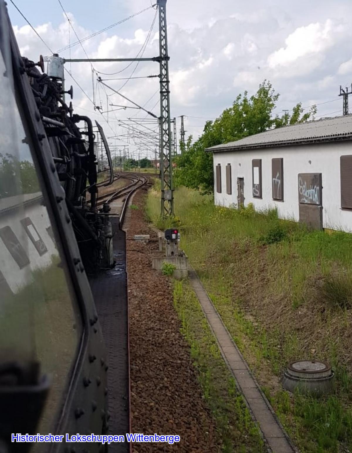 On 5 July 2020, we returned from a shunting trip from the port of Wittenberge with 50 3570. At the entrance to the main line to Wittenberge main station, we had to wait at the shunting signal for another train to pass.