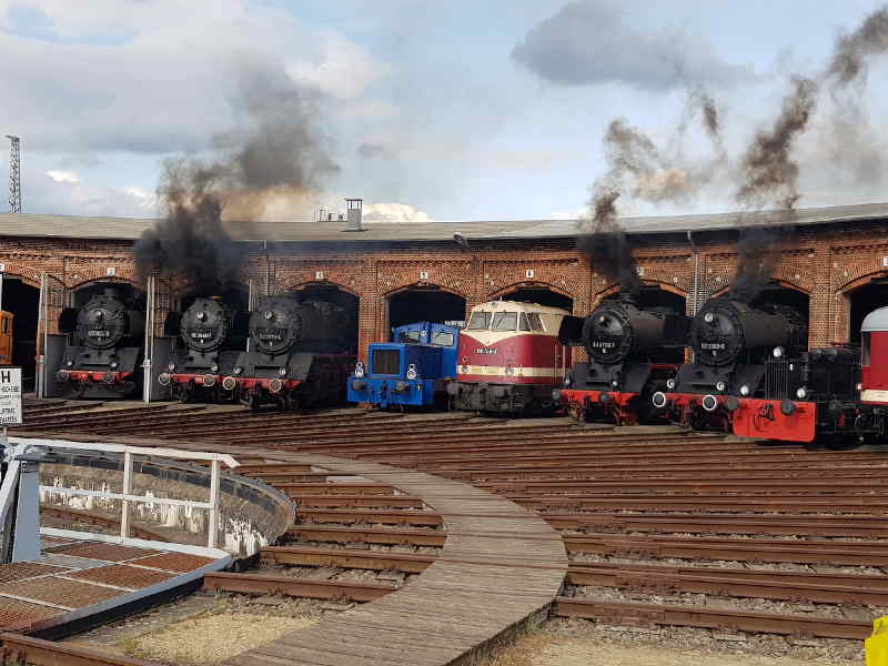 On the Friday before the event, our operable exhibits were rigged. They were loaded with coal, the water tanks were filled and they were cleaned. Steam locomotive 50 3570 was also decorated because it is celebrating its 80th birthday these days.