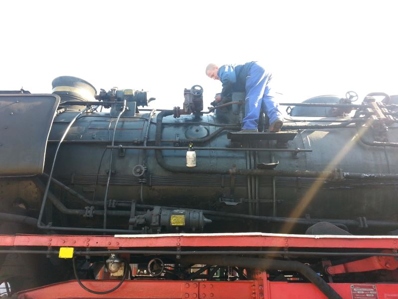 Then the major shunting work begins. Here, EMMA is hauled out of the shed to be placed where she will be fired up.
