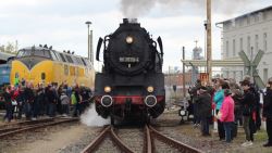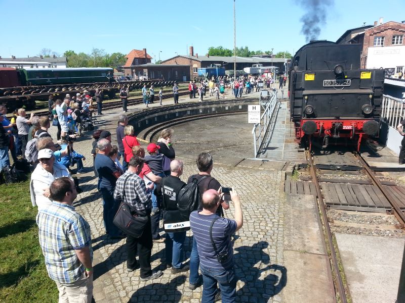 Last weekend the active participants celebrated the 25th anniversary of the association Dampflokfreunde Salzwedel e.V., which in 2012 joined forces with the association Historischer Lokschuppen Wittenberge e.V. to run the locomotive shed in Wittenberge as a railway museum. It was a really big party and with many visitors, whom we thank very much for coming. About 2,200 people visited us over the two days. A great number of large and small railway fans, gives us grounds for optimism for the next 25 years with their interest and enthusiasm. We would also like to thank the participating companies who supported us with organisation of the festival and with exhibits. The Eisenbahngesellschaft Potsdam (Potsdam Railway Company) provided us with the small steam locomotive Pritzwalk for cab rides and the VT98 rail bus for the harbour tours. The company Lok OST Stassfurt visited us with a former class 112 Reichsbahn diesel locomotive, which in turn brought along two modern class 143 locomotives from Salzland Railservice. We would also like to express our thanks to our club colleagues from Neum