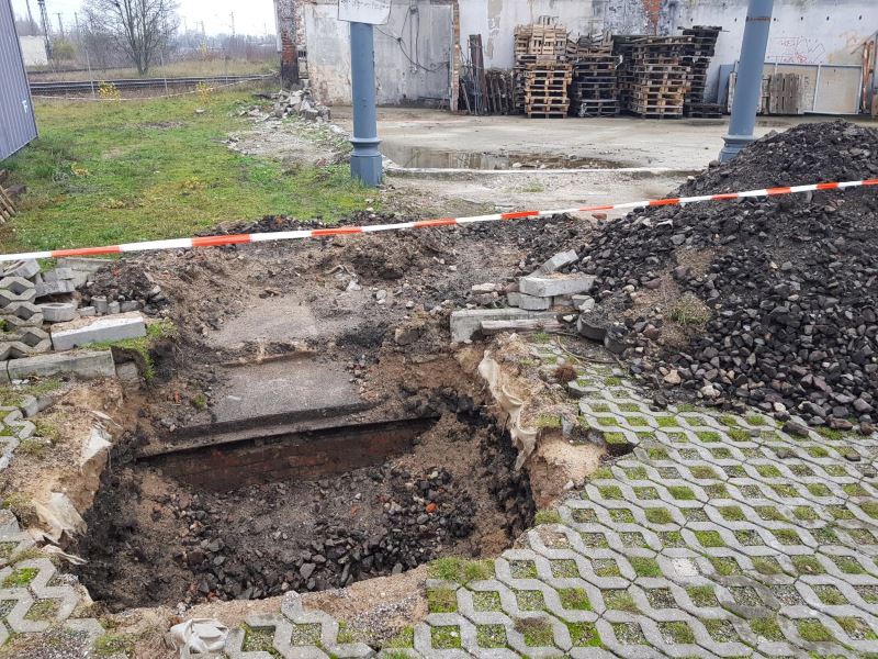 Since in the medium term a turntable is to be re-installed at No. 1 Shed I, last week test excavations were carried out in order to be able to measure the still existing, but currently infilled turntable pit, or more precisely its enclosure.