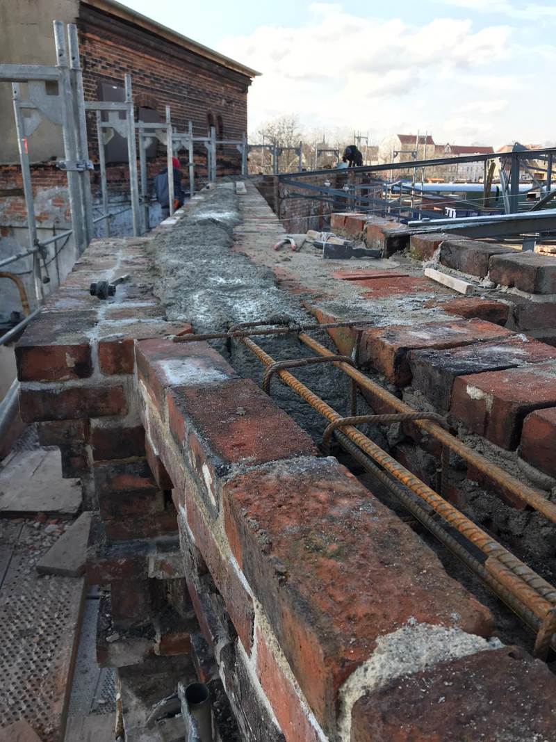 In addition, the paving work by the water crane in front of the locomotive foreman's office continued. Granite edges were laid here and since each stone weighs about 300 kilos, a makeshift wooden lifting device was specially made to lift the stones from the trolley and place them in their final position.