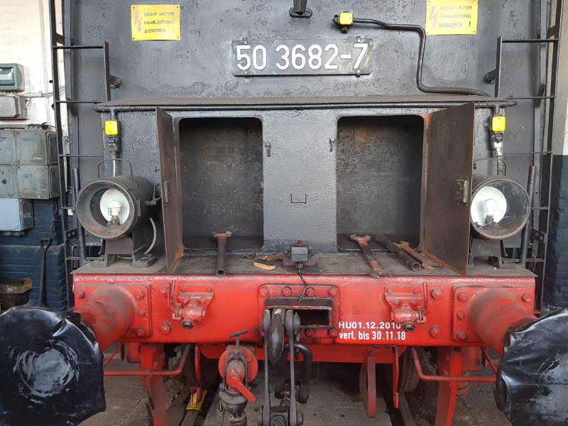 The conservation work on the steam locomotives includes draining the the boiler, tenders and auxiliary drives. This is to prevent ice forming during frost, causing components to bursting due to the ice pressure. The following picture shows 50 3570 being treated.