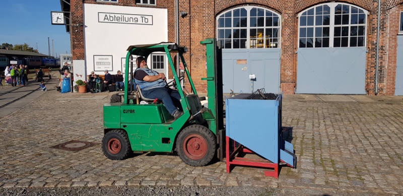 In bright sunshine, the Historic Engine Shed Wittenberge was celebrated its autumn festival last weekend. The event was very well attended. We welcomed a total of 1,400 guests. The consistently positive feedback encourages us that we are on the right track. Many thanks for your visit and also a big thank you to the RBB radio station in Perleberg, which referred to our event in its weekend tips. But let's take it one step at a time: On the Friday before the event, we noticed that a small hare had fallen into the turntable pit and could not get out under its own power. So we held a hare hunt, caught the little guy and released him. He is doing well again.
