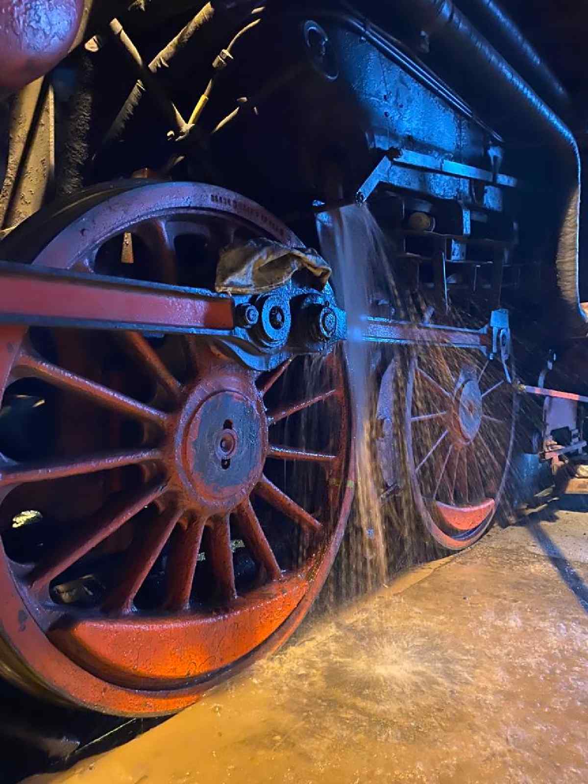 What else happened this weekend? After the end of the season, our operational vehicles have to be put into hibernation. Therefore, the boiler of the 50 3570 was washed out on Saturday. This means that the residues left behind in the boiler when the water evaporated are washed out with a sharp jet of water.