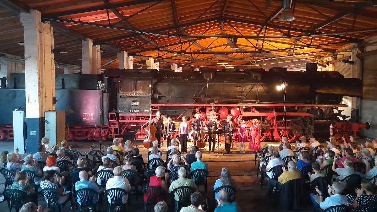 On 9.9. in the evening, a classical concert took place in the locomotive shed in front of a historical backdrop. The quartet and we were delighted to welcome more than 150 culture enthusiasts who listened to the sounds of Bach, Mendelsohn and Co. in the locomotive shed. Great atmosphere! It's nice that more and more people are taking advantage of such an offer.