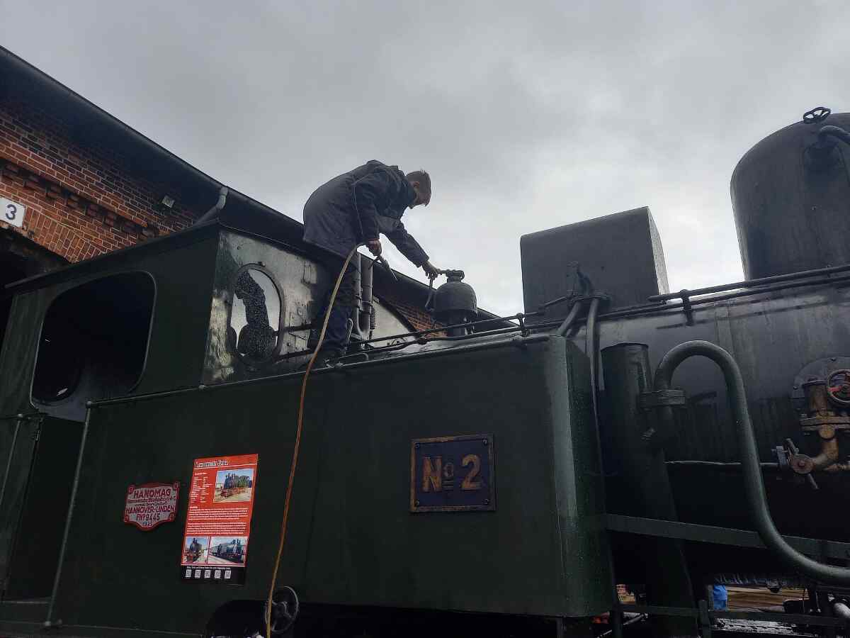 After a week's rest, the work continued last weekend. One by one, our steam locomotives are being winterised. This means in particular that the water must be drained from the boilers, storage tanks and pipes to avoid frost damage in winter. The boilers also have to be cleaned inside and out. Last weekend, locomotive "Emma" was on treatment.