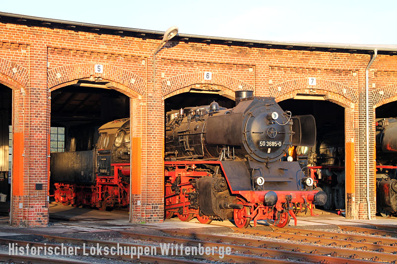 Evening in Wittenberge depot on May 1, 2015 and 50 3685-0 enjoys some glorious sunlight in front of the shed.