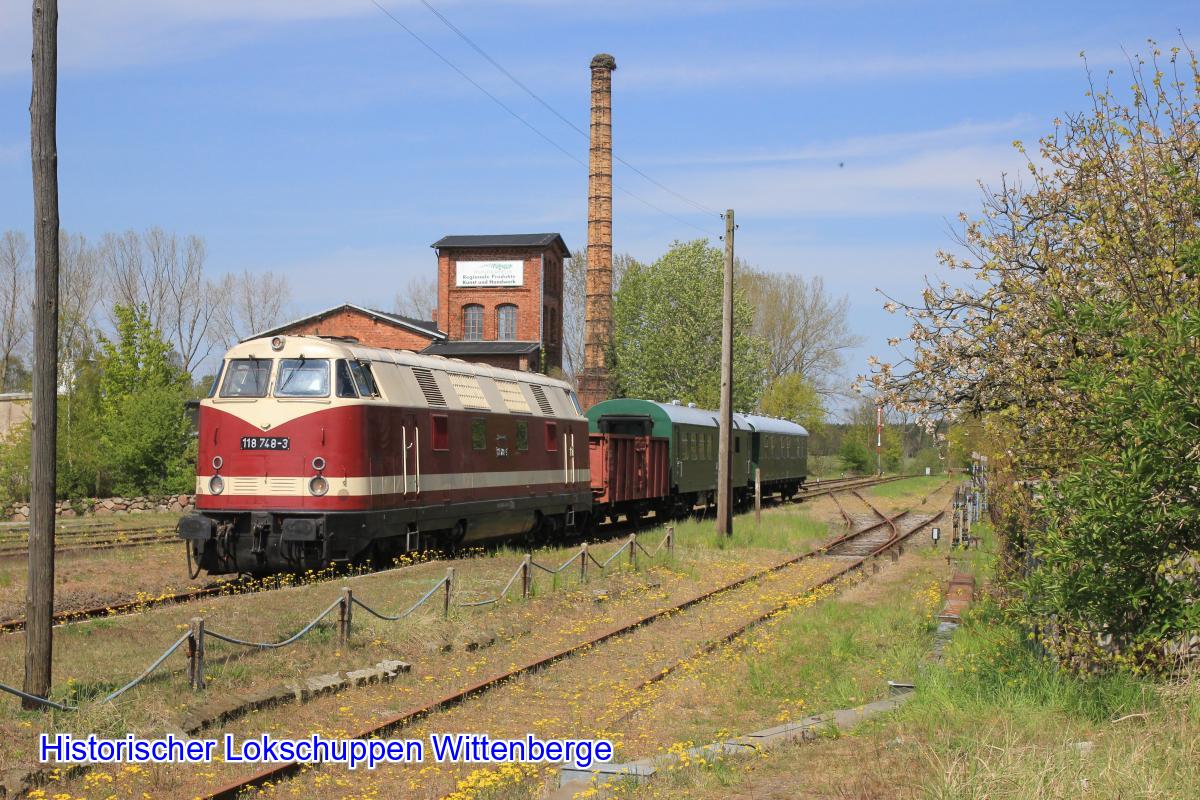 On 2 May 2015, we said goodbye to our diesel locomotive 118 748 from active service because its licence expired the following week due to the expiry of the inspection periods. For this reason, we organised a photo special, first from Wittenberge to Karow, then to Putlitz and then back to Wittenberge. The picture was taken at Ganzlin.
