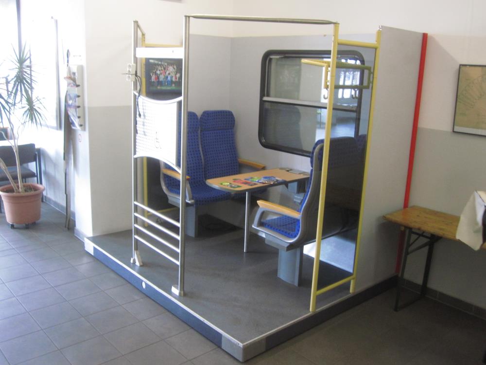 In the passageway to the loco shed there is a reproduction of a passenger compartment. This was fabricated for exhibition purposes by the neighbouring DB AG repair workshop. The fittings are designed in the style of a commuter carriage of the early 2000s.