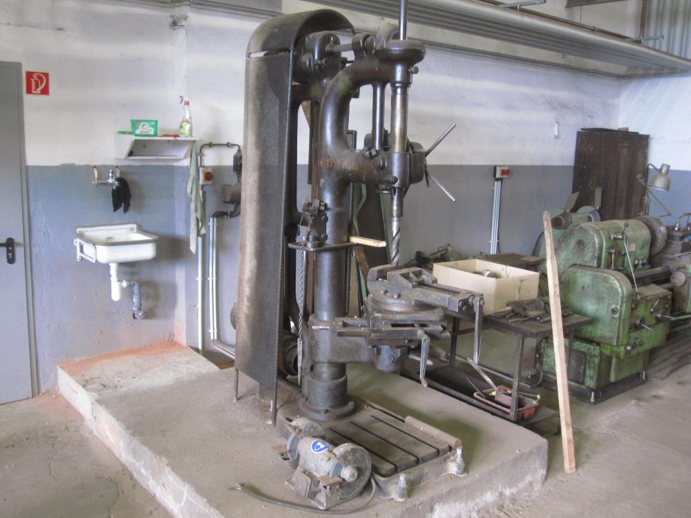 Von der Eingangshalle erreicht man zunächst die Werkstatt des Vereins. Hier sind diverse Werkzeugmaschinen aufgestellt, die wir für die Bearbeitung von Teilen für unsere historischen Fahrzeuge verwenden. Sie stammen großteils aus dem ehemaligen Bahnbetriebswerk Salzwedel und wurden im Jahr 2012 von dort übernommen. Zu sehen sind u.a. eine Drehbank, eine Ständerbohrmaschine, eine Maschinensäge und andere Maschinen, die der Metallbearbeitung dienen.