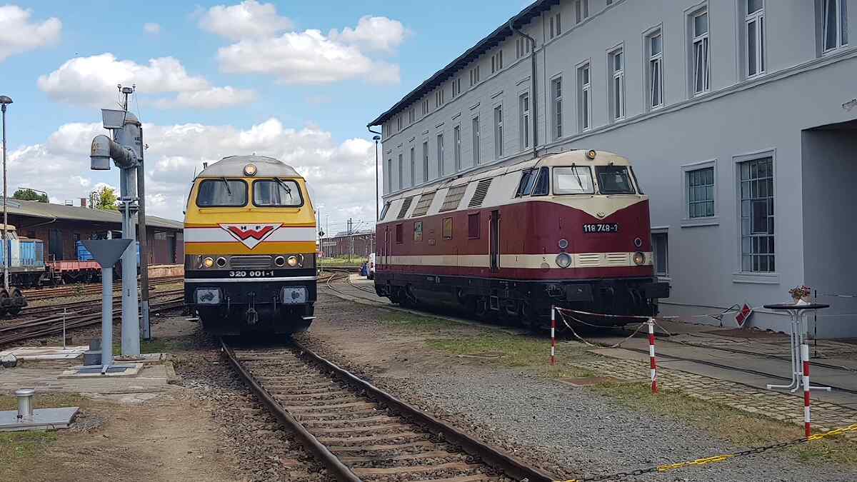 Vielen Dank sagen wir auch noch der Eisenbahngesellschaft Potsdam, die uns kurzfristig zwei Elektroloks der Baureihe 151 als Ausstellungsstücke zur Verfügung stellten.