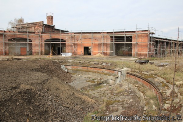 Mit dem dort gewonnenen Material wurde die Grube der Drehscheibe im Bereich des ehemaligen Lokschuppens 1 aufgefüllt. Es ist geplant, den Umfang dieser Grube zukünftig durch Pflastersteine noch sichtbar erhalten. Ein Gleis wird über die ehemalige Grube geführt.