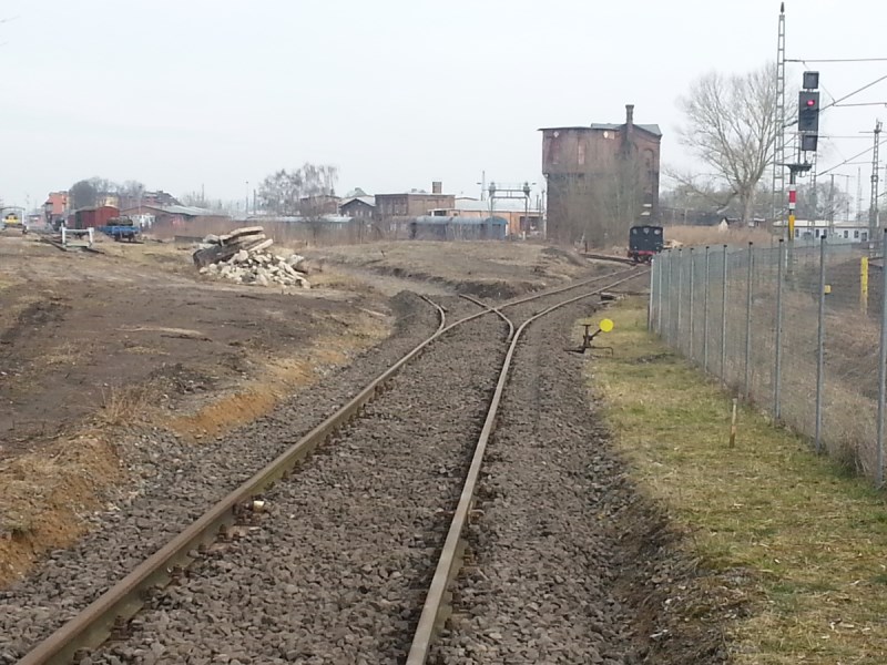 Am 7.3.2015 ist der Baufortschritt unseres Gleisbauabschnittes 1 schon deutlich erkennbar. Gleise und Weichen sind verlegt und eingeschottert. In der kommenden Woche werden die Gleise gestopft und teilweise verschweißt.